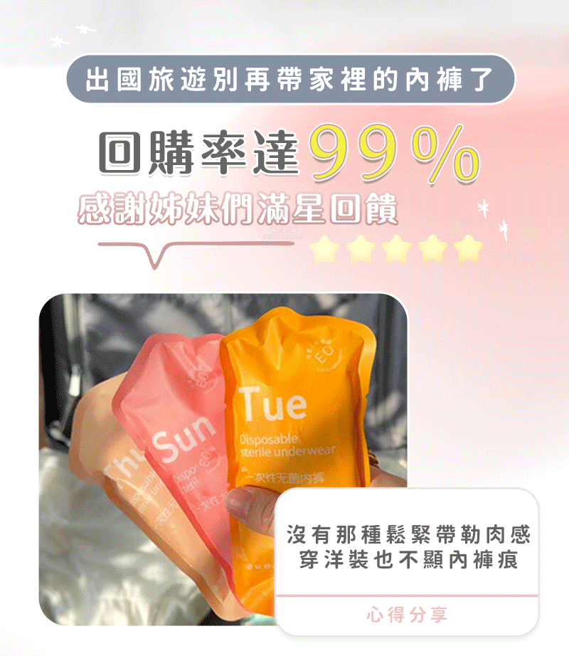 12分鐘前純棉無菌日拋內褲 - 【四套𝟒𝟎件】團購嚴選,數量有限NT$999